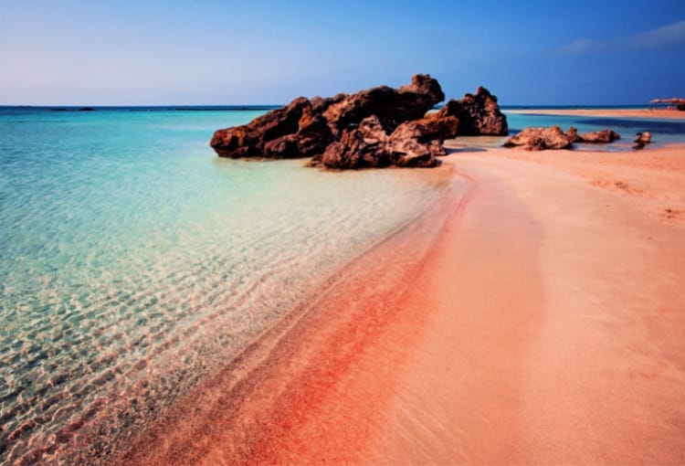 Greece is home to one of the most breathtaking beaches in the world, as the beach is pink. It became so due to the fact that the sand is dotted with small shells, corals and starfish, which painted it that color.