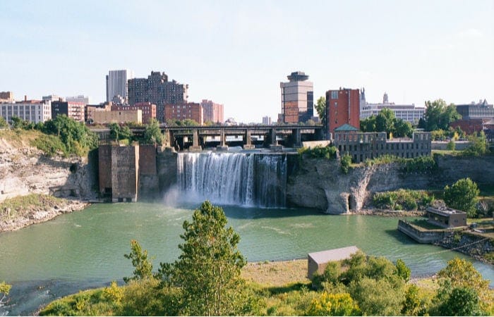 Nothing says Rochester like the High Falls. Located in the centre of town, the High Falls is a 96-foot waterfall located in downtown Rochester.