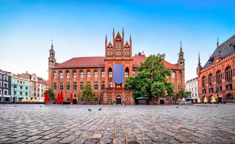 Debido a que la ciudad no fue destruida durante la Segunda Guerra Mundial, la plaza principal de Torun, y sus casitas y edificios medievales siguen en pie, y su centro histórico ha sido declarado Patrimonio de la Humanidad por la UNESCO.