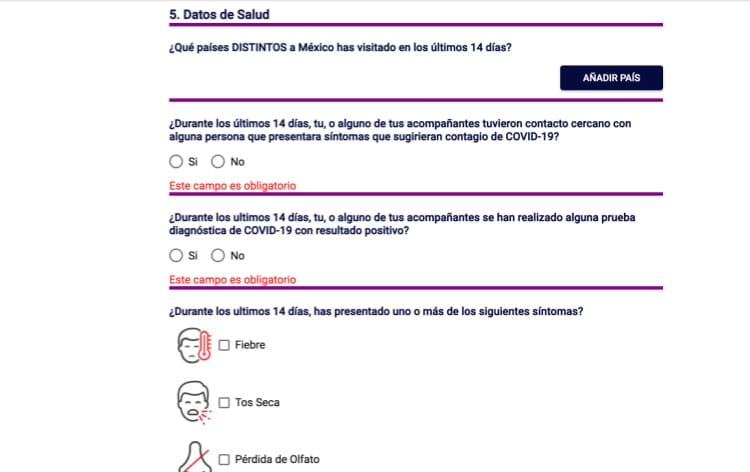 Desde el año pasado, es obligatorio para todos los viajeros que lleguen en avión, rellenar el Cuestionario Electrónico de Salud. Para el formulario, entra en la web www.vuelaseguro.com y completa todos los datos requeridos.